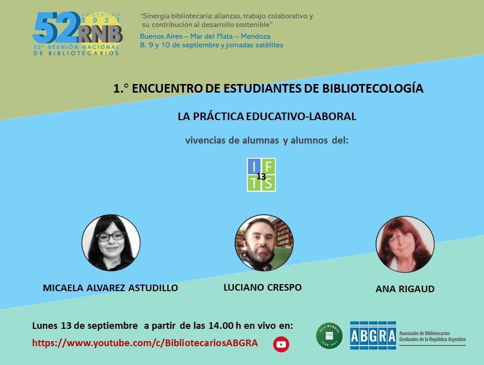 Participación de estudiantes del IFTS Nº 13 en el 1º Encuentro de estudiantes de bibliotecología IFTS13 Alumnos, Anuncios, Eventos septiembre 8, 2021junio 15, 2022 Estimados alumnos: Reiteramos la invitación a participar del 1º Encuentro de estudiantes de bibliotecología en el marco del 52º Reunión Nacional de Bibliotecarios de ABGRA en el cual participarán varios estudiantes de nuestro Instituto. Comparte esto: Email a link to a friend (Se abre en una ventana nueva) Correo electrónico Compartir en WhatsApp (Se abre en una ventana nueva) WhatsApp Compartir en Telegram (Se abre en una ventana nueva) Telegram Compartir en X (Se abre en una ventana nueva) X Compartir en Facebook (Se abre en una ventana nueva) Facebook Share on LinkedIn (Se abre en una ventana nueva) LinkedIn Imprimir (Se abre en una ventana nueva) Imprimir Me gusta Cargando... Publicado septiembre 8, 2021junio 15, 2022