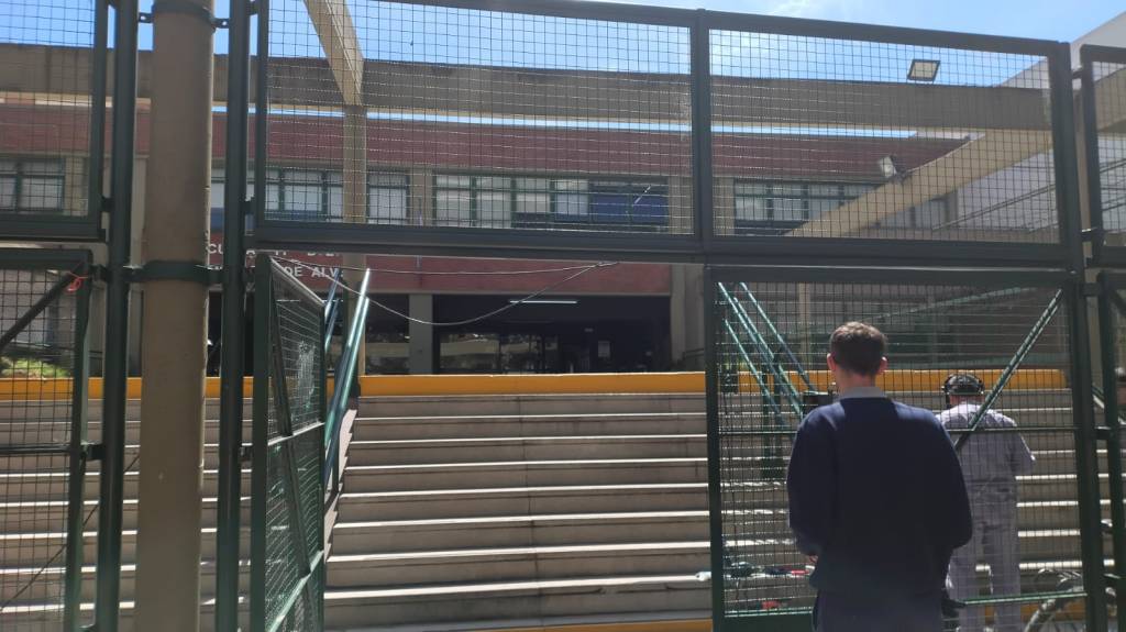 Atento a los trabajos para instalar un elevador nuevo para personas con movilidad reducida se movió el timbre y modificó el acceso al instituto por la puerta de rejas exterior del medio.